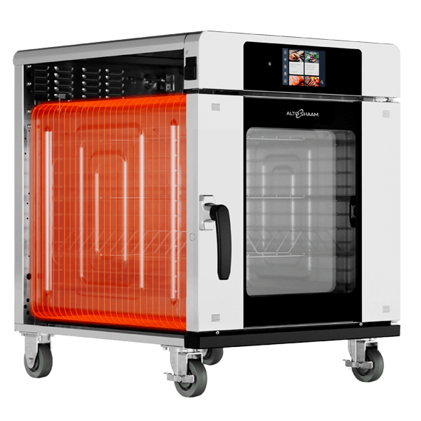 Alto-Shaam cook and hold ovens feature our proprietary Halo Heat technology. Unlike traditional methods, Halo Heat maintains consistent, gentle radiant heat without extreme fluctuations. This ensures better food quality and higher yields by evenly surrounding food without harsh elements or added humidity, delivering superior results customers will appreciate.
