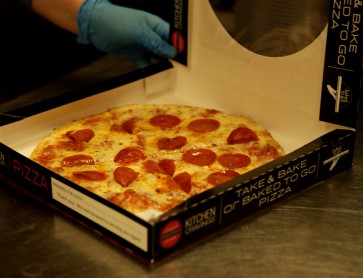 Pizzas and other items can be cooked ahead of busy periods and placed in a heated holding cabinet or heated shelf display for quick sale.